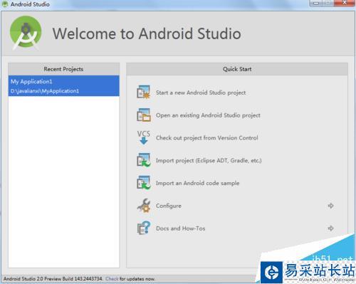 在進行使用的android studio的進行對android項目上開發(fā)時,可能需要對android studio的各種上設置已達到自己需要的設置功能,那么在進行使用android studio默認的情況下,打開android studio之后就會自動打開一個項目的。