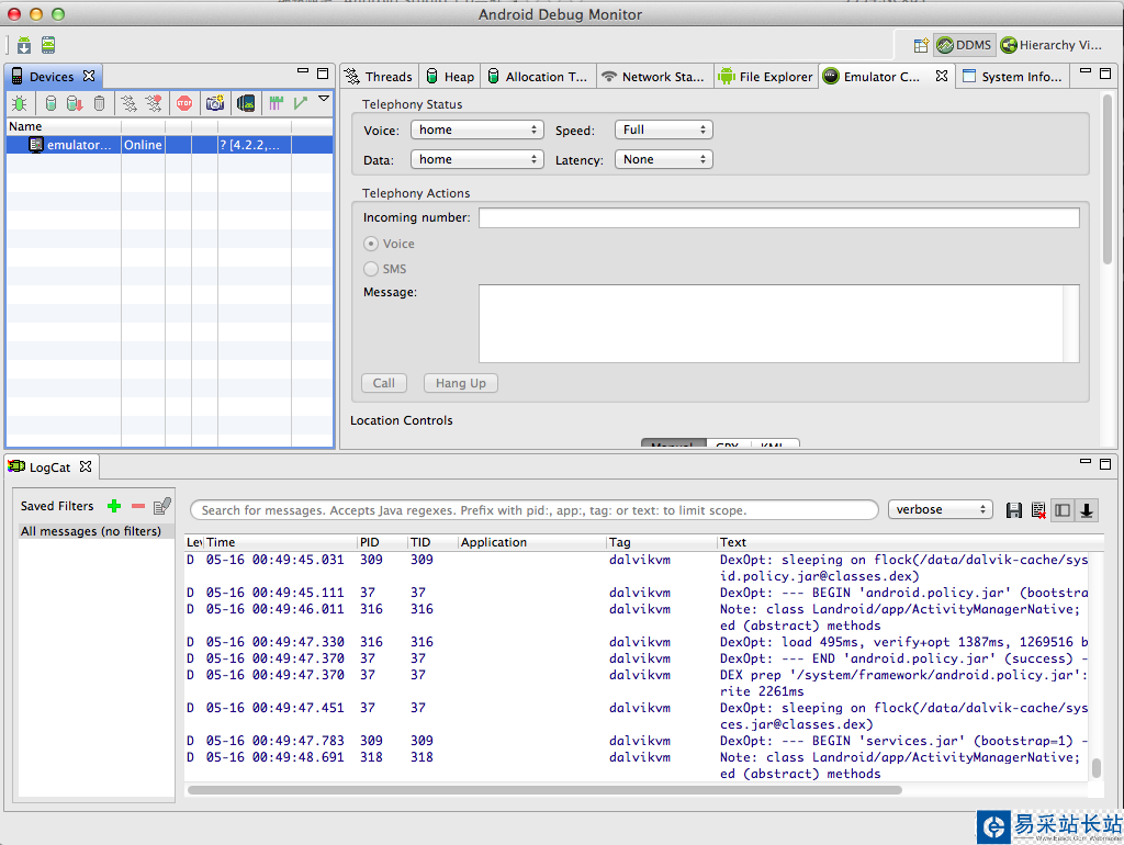 然后重新嘗試,又起來了。DDMS的樣子,和Eclipse上的一樣。