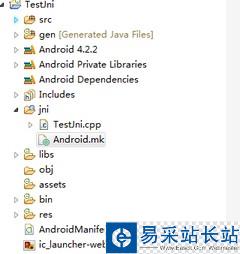 TestJni就是要加載的lib的名稱,LOCAL_SRC_FILES 是資源文件的路徑。