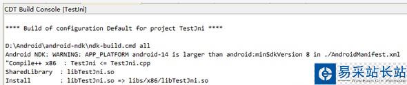 直接運行程序,可以在Console窗口中看到NDK build的輸出