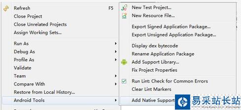 新建一個空白的Android工程,在根目錄上點擊右鍵Adnroid Tools - Add Native Support...