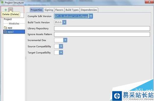 2、在Project Structure頁面,選中要刪除的項(xiàng)目,點(diǎn)擊上面的減號圖標(biāo)。