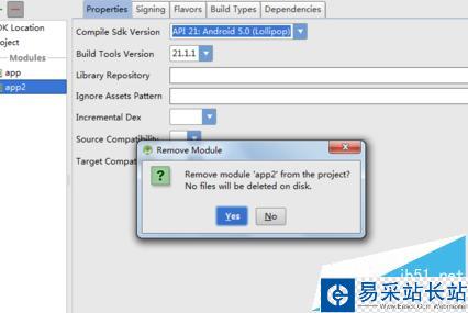3、彈出“Remove Module”的彈框,點(diǎn)擊Yes,然后ok