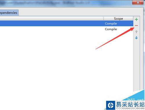 5、在列表可以看到已添加的依賴的模塊,選中要?jiǎng)h除的模塊,然后點(diǎn)擊右側(cè)的位置當(dāng)中的“-”即可完成刪除。