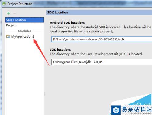 3、這樣就直接進(jìn)入到project structure,需要modules的選項(xiàng)中進(jìn)行選中一個(gè)項(xiàng)目。