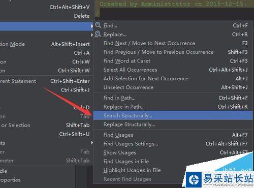 4、這樣就會(huì)彈出了下一級(jí)的菜單中,進(jìn)行選擇下一級(jí)菜單中的“search structurally”的選項(xiàng)菜單。