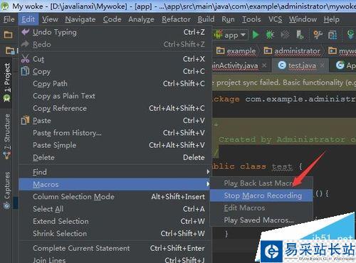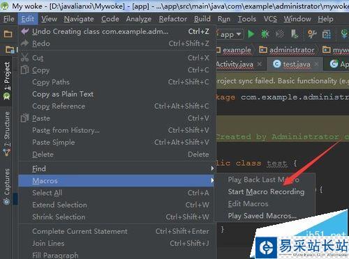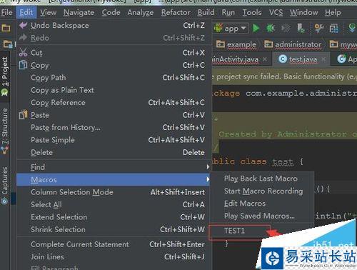 1、進行打開Android studio的工具后,進行點擊Android studio菜單中的edit后,就會彈出了一個下拉的菜單中進行選擇macros的選項。