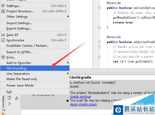 3、彈出的下拉菜單中,可以下拉底部的位置中選中為“file Encoding”的選項。