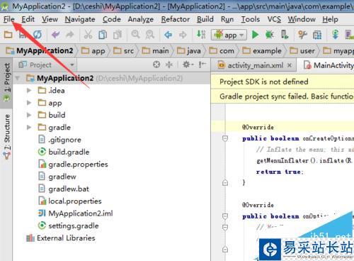 2、然后點擊Android studio的菜單中的“file”的選項。