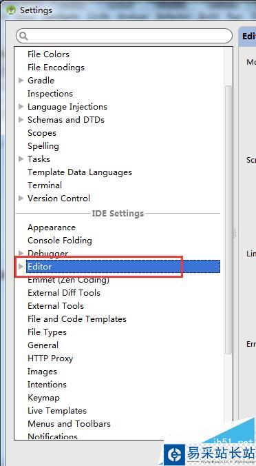 2、左側導航欄,選擇“Editor”,如圖: