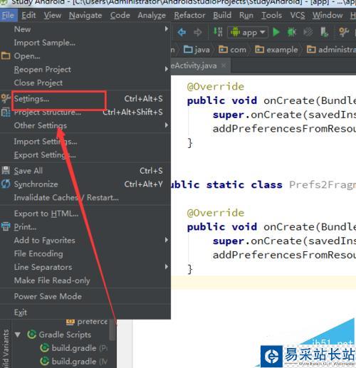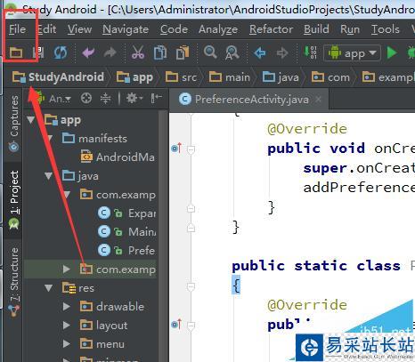 1、首先打開Android Studio,單擊菜單欄中的“File”菜單