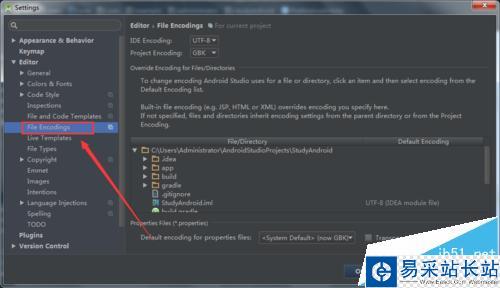 4、在展開的下一級菜單中選擇“File Encodings”選項,在面板右側會出現對該面板的所有設置