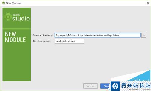 4、導入窗口中顯示了該Module(項目)的詳細信息,點擊Finish完成導入。需要注意的是導入到AndoridStudio項目中的Library也必須是AndroidStudio項目,不能是Eclipse項目,如果是Eclipse項目的話,需要選擇導出AndroidStudio項目。