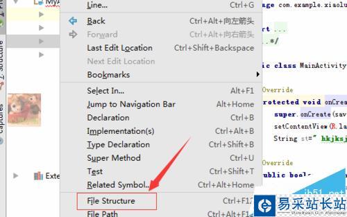 4、然后就會彈出了下拉菜單中進(jìn)行選擇為“file structure”的選項菜單。