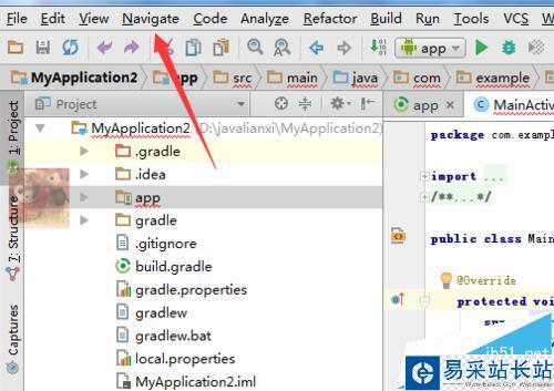 3、然后進(jìn)行點擊Android studio菜單中的“navigate”的選項菜單。
