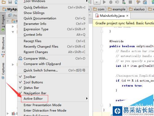 2、彈出了下拉菜單中進行選擇為“active editor”的選項。