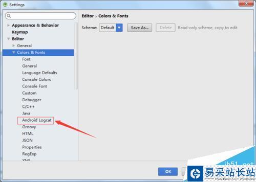 3、進行點擊editor的會展開,進行點擊android logcat的選項。