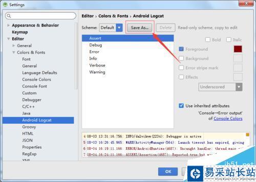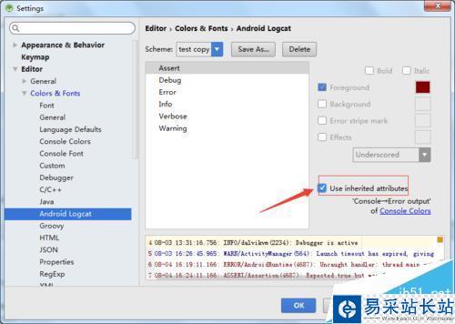5、新建的android logcat還是不能直接修改,把use inherited attribute的溝去掉。