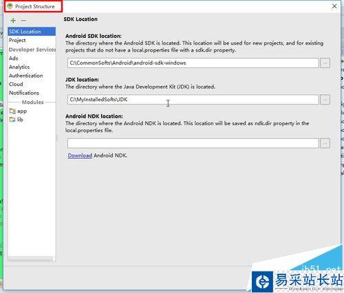 3、然后打開工程的組織管理窗體:Project Structure。可以通過File——Project Structure打開,也可以通過點擊工具欄中的“Project Structure”按鈕打開,打開的界面如圖所示。