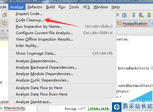1、在Android studio菜單中進行選擇為analyze的選項的菜單。