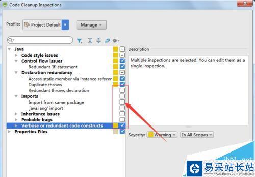 4、進入到了code cleaup inspections的選項框中,根據的自己需要進行勾選上檢查的設置。