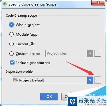 3、這樣就會彈出了一個specify code cleanup scope的選項。進行點擊瀏覽菜單的按鈕。