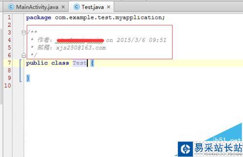 5、然后在android studio中新建一個類Test,可以看到自動添加了注釋。