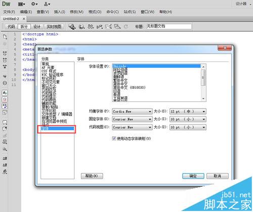 3、在首選參數對話框中選擇分類為‘字體’。如圖: