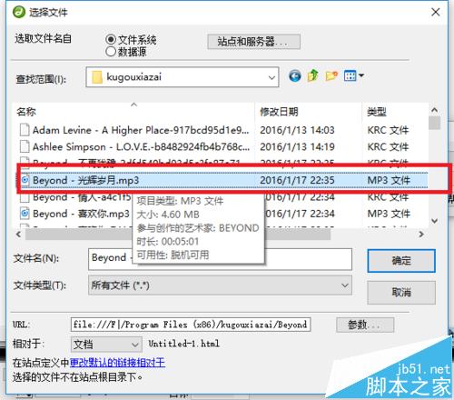5、彈出如下的一個(gè)選擇框,這里進(jìn)行聲音的瀏覽性文件