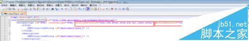 4、編輯Dreamweaver安裝目錄下的/configuration/DocumentTypes/MMDocumentTypes.xml文件。修改第三行的兩個參數,在參數末尾添加“,vm”。修改完畢后保存。
