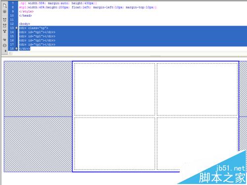 3、在body中創建一個層div并設置class屬性為tp,接著在第一層div中新建四個div,id屬性設置為tp1,代碼為