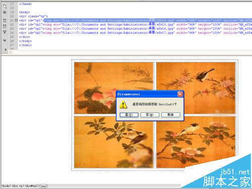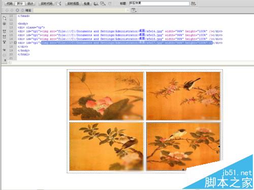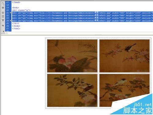 9、重復步驟7、8,分別為剩下的三張圖片設置擠壓效果后,在設計面板中查看自動生成代碼的變化。 -language:ZH-CN; mso-bidi-language:AR-SA'>擠壓命令。