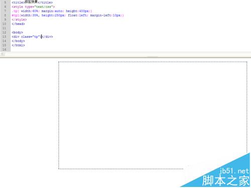 2、在標題<title>中輸入文字內容為擠壓效果,接著在下面輸入代碼