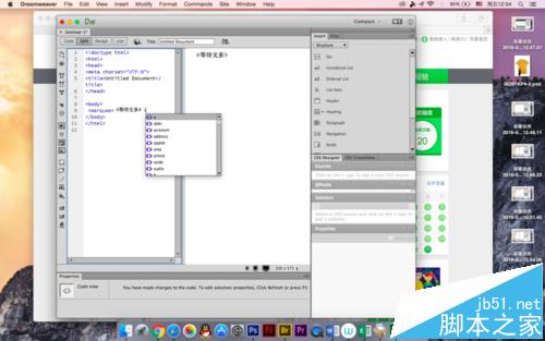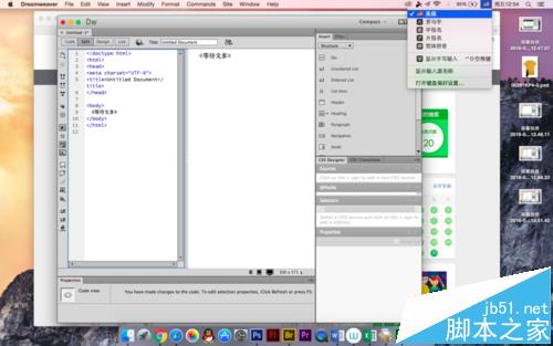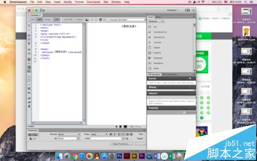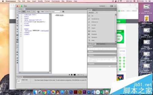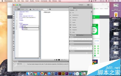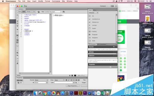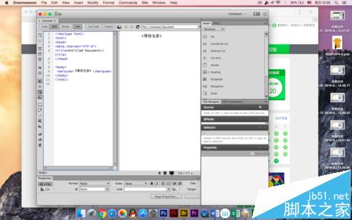 4、在這個(gè)頁(yè)面中大家很容易就能將代碼和設(shè)計(jì)頁(yè)面對(duì)照著看,以后直接寫代碼其實(shí)就可以,那樣更快,這里小編隨便打幾個(gè)字為例,在設(shè)置頁(yè)面打,大家會(huì)發(fā)現(xiàn)字體是在body之間的,即如果在代碼區(qū)打字,要在body后面打