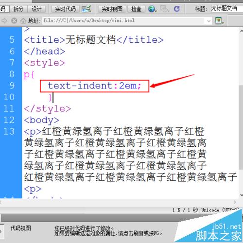 7、最后,在p樣式里面就可以寫入”text-indent:2em;"代碼來實現首行縮進了。