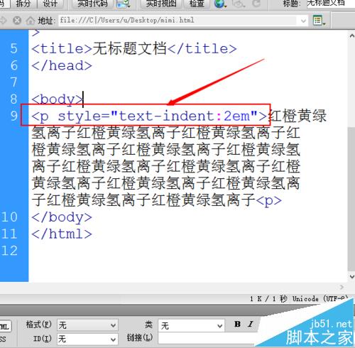 3、然后我們在<p></p>標簽里面添加(style=“text-indent:2em"),注意,要在英文狀態下輸入。