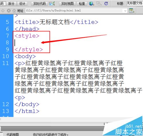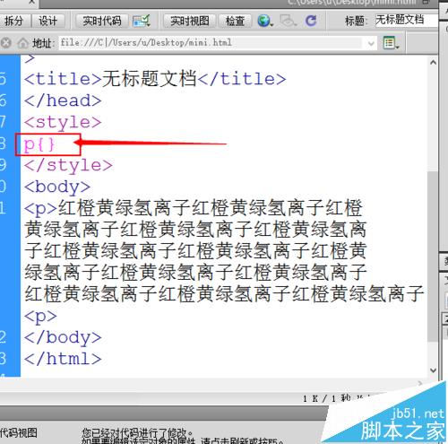 6、然后再在<style></style>標簽里面定義段落p的樣式。