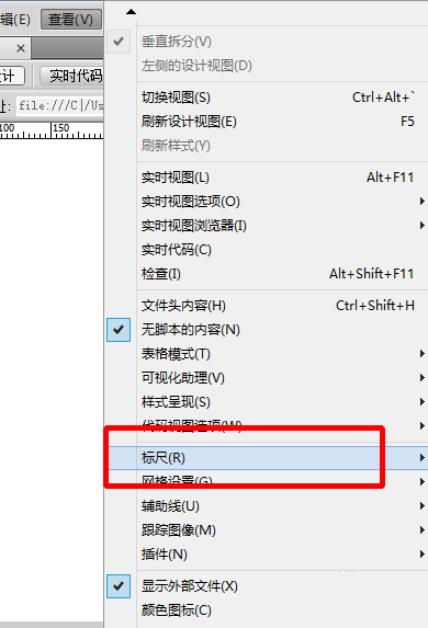 5、我們找到上邊的工具欄的查看,里面有個(gè)標(biāo)尺的選項(xiàng)