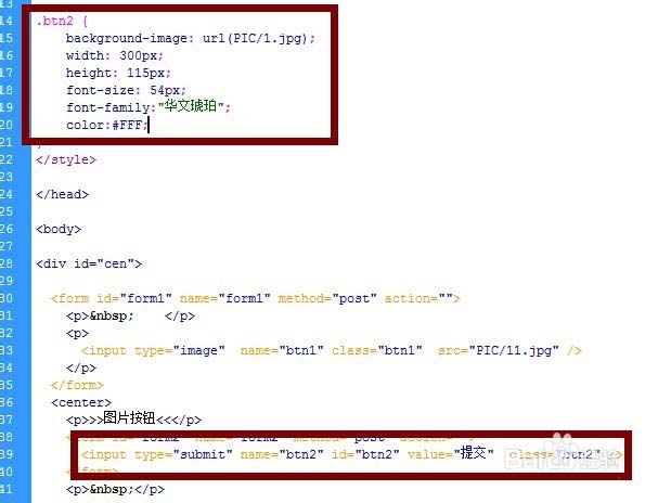 2、給新按鈕定義一個樣式class="btn2",設置長寬(與背景圖大小一致)和背景圖。