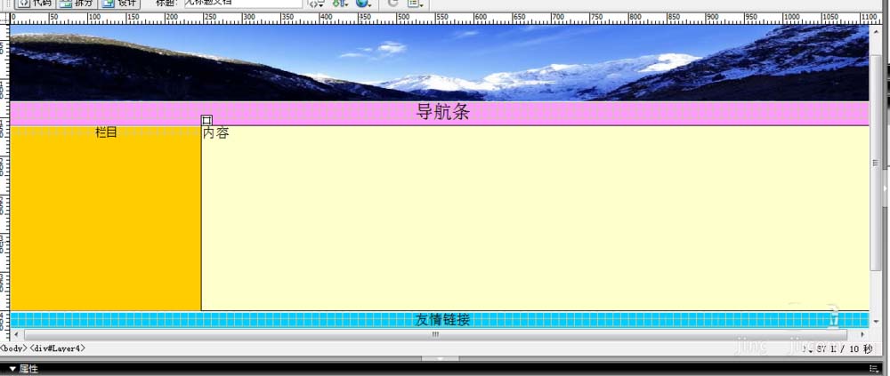 5、在圖像下面繪制一個層,設置屬性用來放置導航條。并繪制其他的層來放置內容。