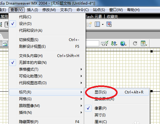 3、顯示標尺。點擊查看/標尺/顯示,可以顯示標尺。