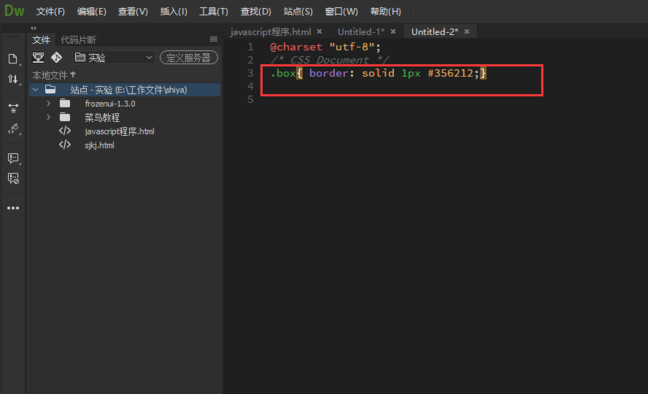 7、在css樣式.box{ }里加上這個代碼“border:solid 1px #333333;”。