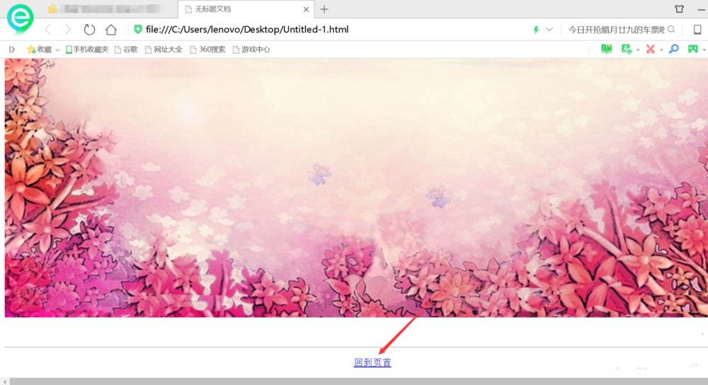3、完成后保存為html文件,完成后在游覽器中打開,點擊“回到頁首”(鏈接的文本),頁面便可以立即回到命名錨記鏈接的指定位置。(效果如圖所示)