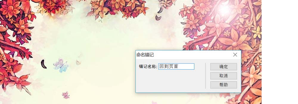 2、在菜單欄中找到“插入”,點擊“命名錨記”,為該錨記鏈接命名,完成后即為頁面插入了錨記鏈接的位置,大家通過拖動錨狀圖形位置來確定鏈接的位置,然后為需要的文本插入超級鏈接(插入——超級鏈接),鏈接為剛剛命名的錨記鏈接名,