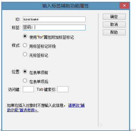 4、我們輸入id為username,標簽為密碼:其他的默認