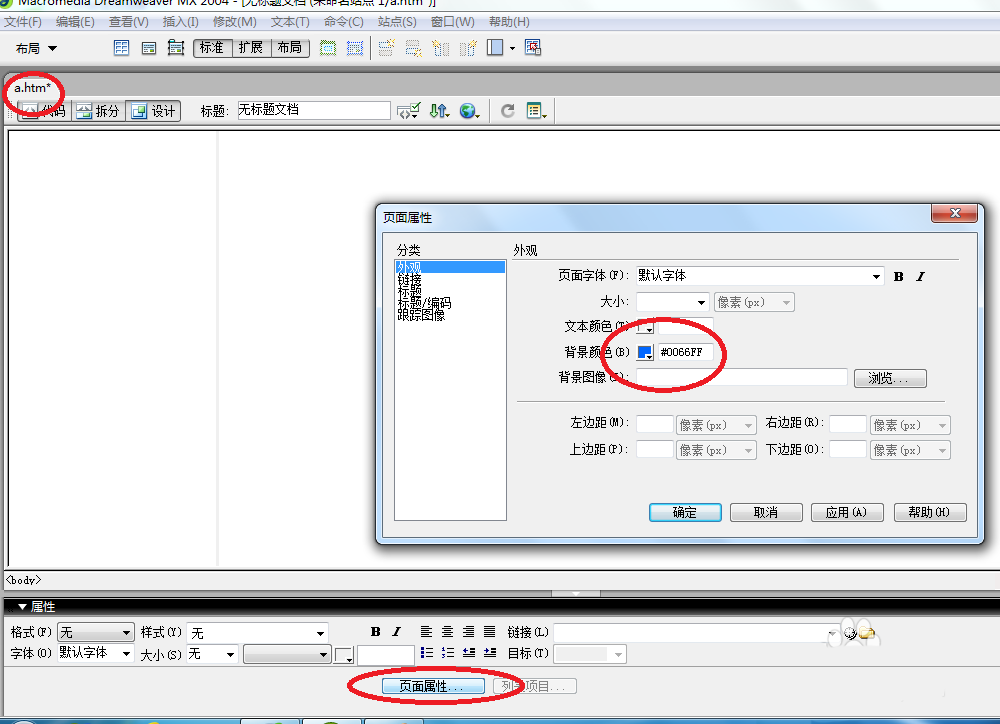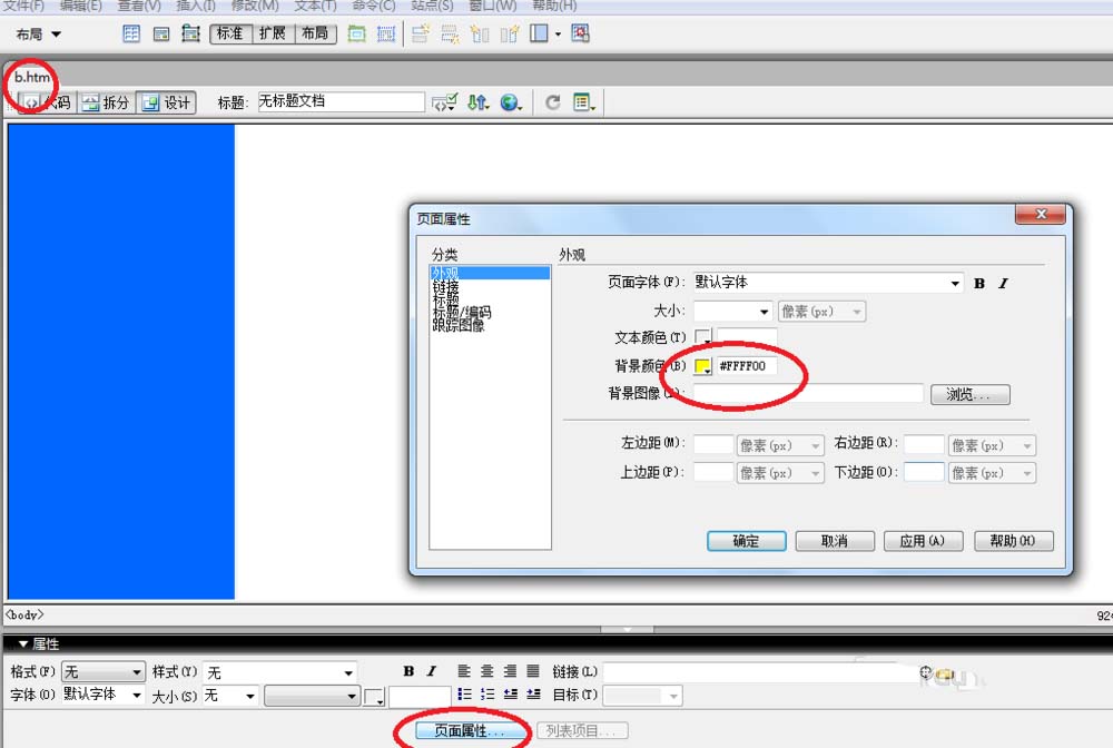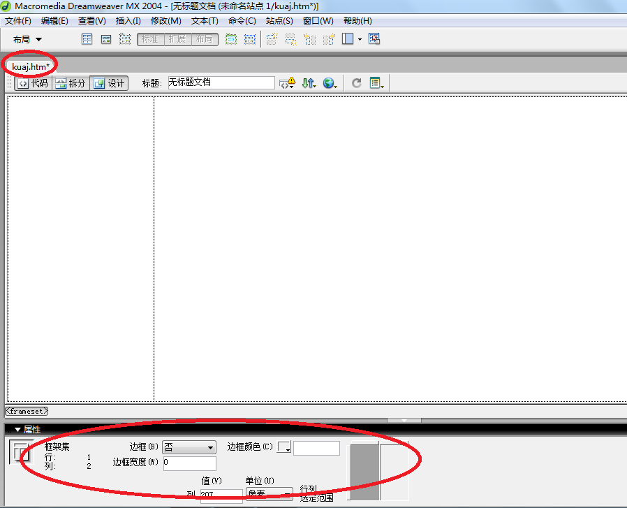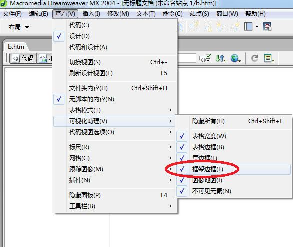 3、點擊中間的邊框,就選中了整個頁面,可以對整個頁面的屬性進行更改,可以移動中間的邊框,也可以點擊查看/可視化助理,勾選框架邊框來顯示或隱藏邊框。