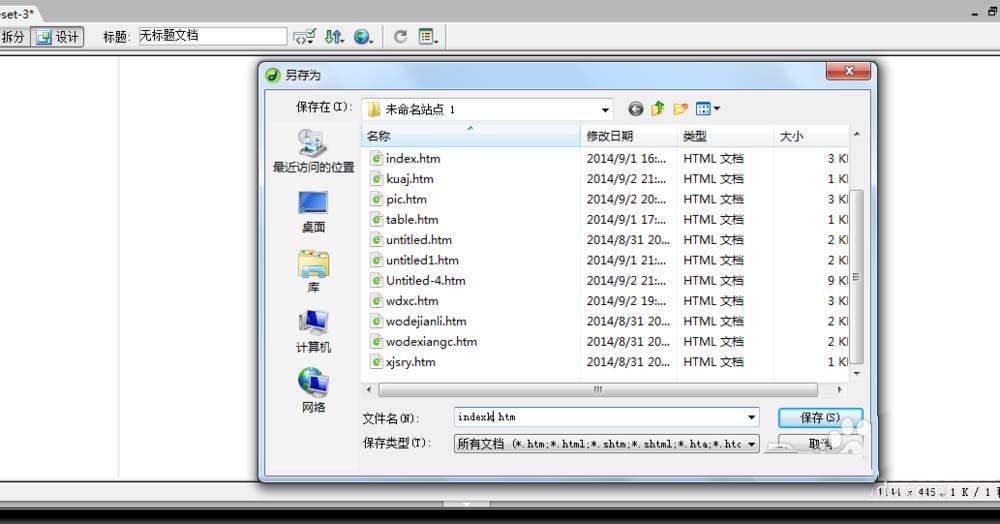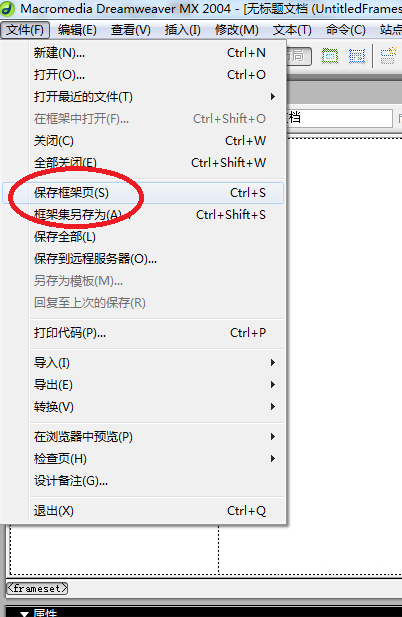 2、這樣就創建了兩個頁面,分布命名。點擊中間的線就是選中了整個頁面,點擊文件/保存框架頁,進行命名。左右兩個頁面分別選中再保存,操作一樣。