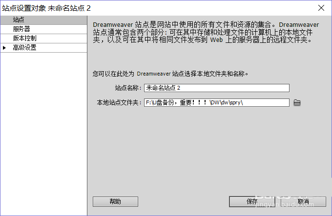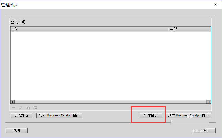 1、打開dreamweaver,新建html,在右下方管理站點,然后新建站點,選擇一個你想放網站文件的位置。最后點完成。站點建立結束。