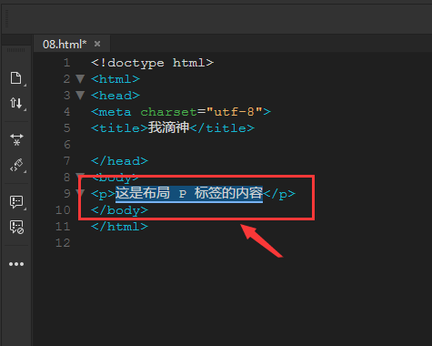7、段落文字如果輸入多行的時候,可以插入多個p標簽,中間更改內容,p標簽是可以自動換行的