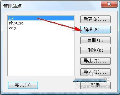 5、在“管理站點(diǎn)”窗口里選中一個站點(diǎn),單擊“編輯”按鈕。